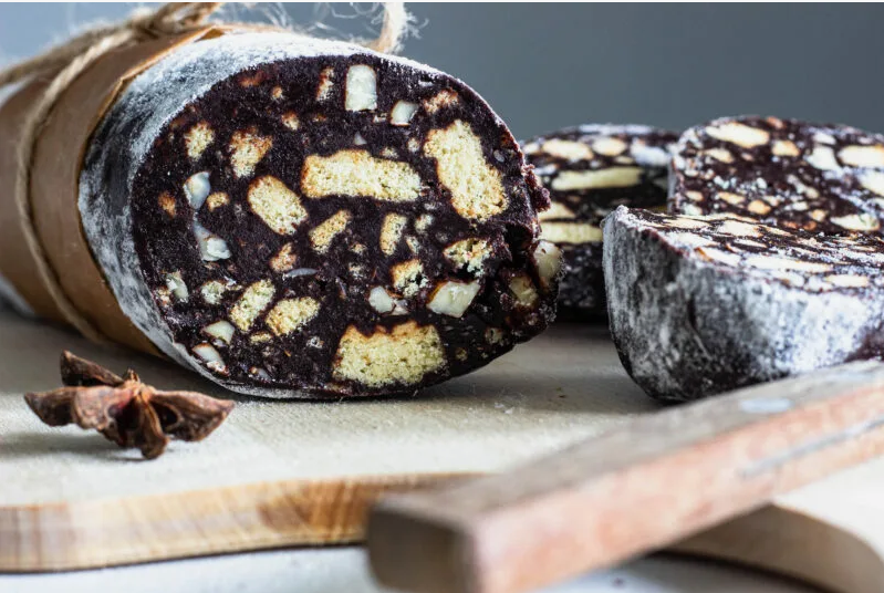 Первая на памяти многим — шоколадная колбаса. Это сладкое лакомство из печенья, сахара, какао и орехов с легкостью замораживалось и радовало своим вкусом в любое время. Практически ритуалом являлось тот момент, когда из морозилки доставали эту вкусную закуску, и с ней не раз прощались на долгое время.