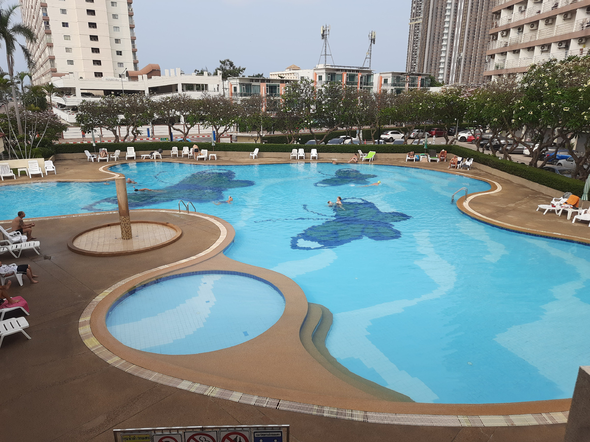 На завтрак был приготовлен скрэмбл, ведь сковородка, как в воке, не позволяет сделать глазунью. После еды отправились к знакомому в кондо Джомтьен Бич. Он уже 8 лет живёт здесь на пенсионной визе и стал хорошим другом.
