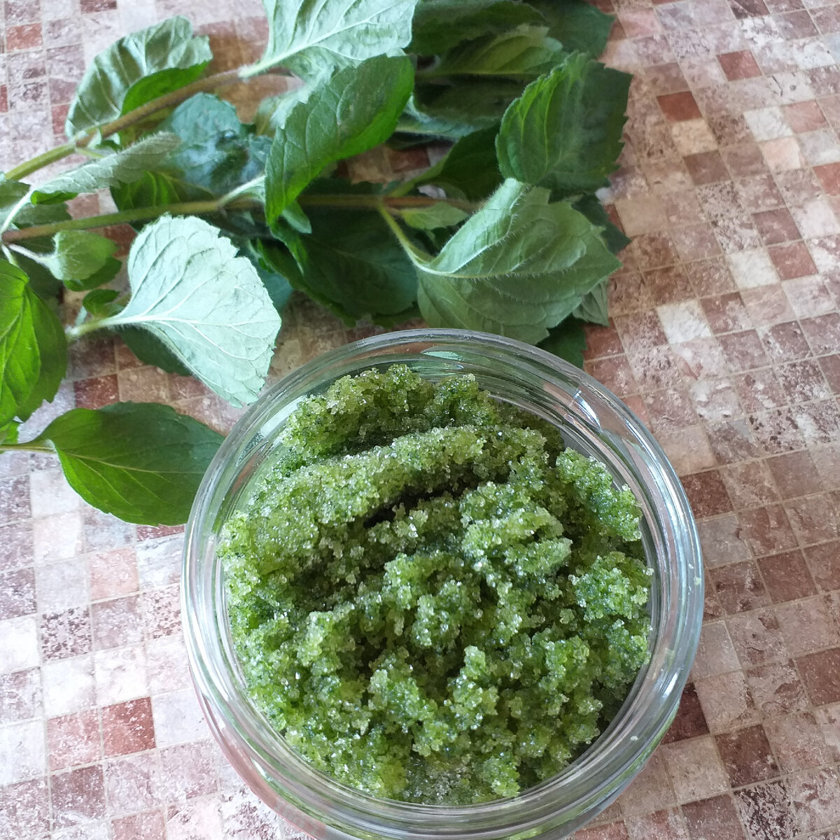 - Переложите готовый мятный сахар в стеклянную банку, утрамбуйте и уберите в холодильник.