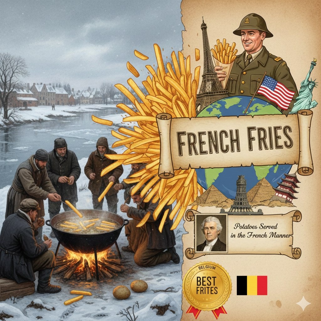 Интересно, что название «French Fries» появилось в результате ошибки во время Первой мировой войны. Американские солдаты, расквартированные в Бельгии, называли блюда на французском, так как это был официальный язык их армии. Ошибочно приняв картошку за французский деликатес, они вернулись домой с новым названием, которое быстро завоевало популярность. Существует также мнение, что ещё до этого, будучи послом во Франции, Томас Джефферсон привёз рецепт жареного картофеля в США, описывая его как «potatoes served in the French manner».