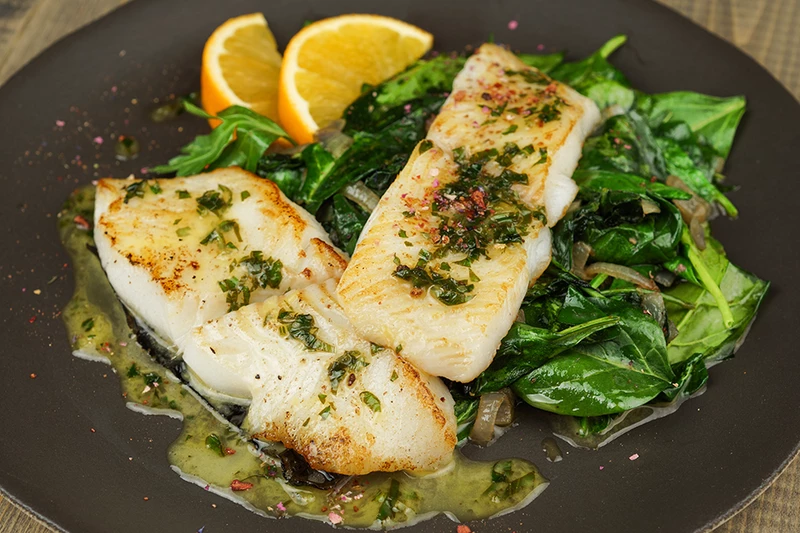 Это блюдо не только приятно радует глаз, но и предоставляет множество полезных свойств. Палтус обогащает организм белком, витаминами D и B12, а шпинат — железом и клетчаткой. Апельсин добавляет витамина C и антиоксидантов. Прекрасный вариант для праздничного ужина или утонченного обеда.