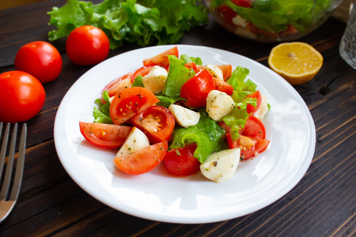 Этот быстрый и легкий салат сочетает в себе полезные ингредиенты, яркие цвета и насыщенный вкус. Он идеально подходит для ужина и требует всего 15 минут на приготовление. Для этого рецепта лучше выбирать сладкие и плотные помидоры небольшого размера, отлично подойдут помидоры черри. Пропорции чеснока, соли, базилика и лимонного сока можно регулировать по своему вкусу. Рекомендуется подавать салат сразу, чтобы сохранить свежесть зелени и текстуру сыра.