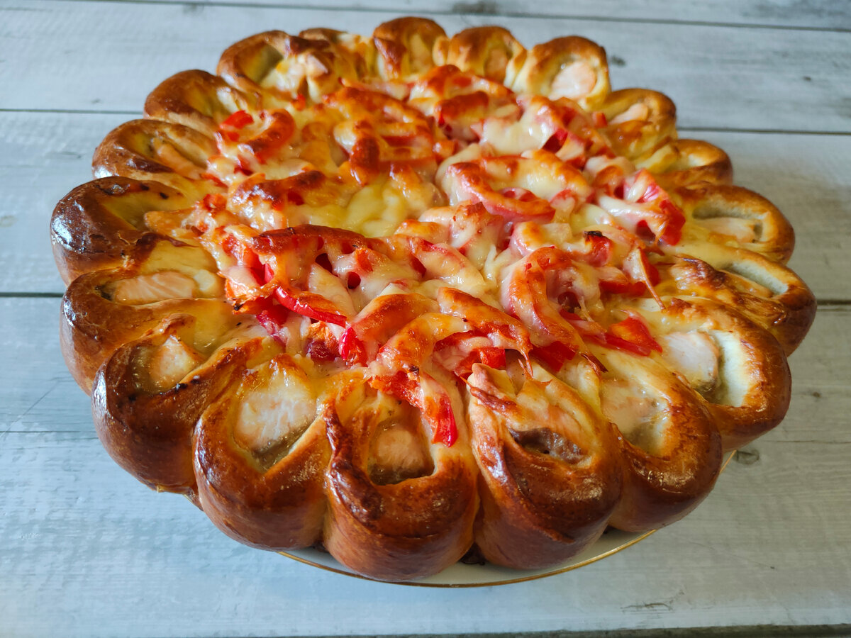 Пирог выглядит непревзойденно. Овощи выделяют сок, а рыба остается сочной, наполняя каждую порцию удивительным вкусом. Идеально подходит для угощения гостей!