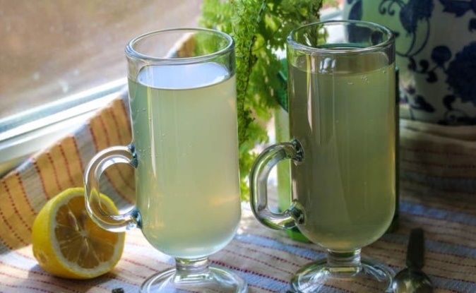4. Выдавите сок из лимонов и добавьте его к чаю с мятой.