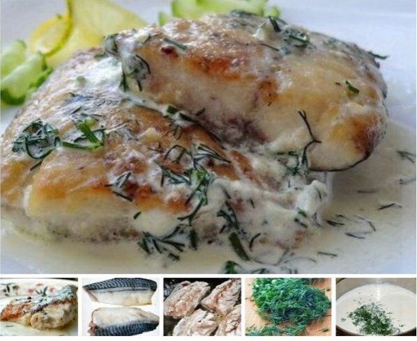 Выложите обжаренные кусочки скумбрии в сливочный соус и готовьте ещё 5 минут на слабом огне, чтобы все ароматы соединились.