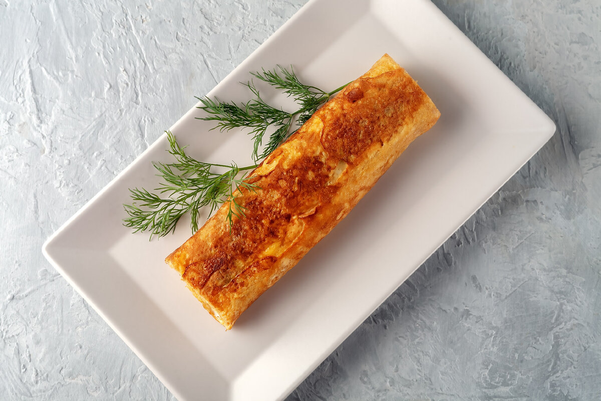 В классический омлет желательно ввести небольшое количество молока и специи для усиления вкуса. Для оригинальности можно добавить измельченную зелень. Этот яркий и оригинальный подход сделает закуску не только вкусной, но и стильной. Роллы обычно разрезают пополам, чтобы показать эффектный срез, а для украшения используют микрозелень, специи или тертый сыр.