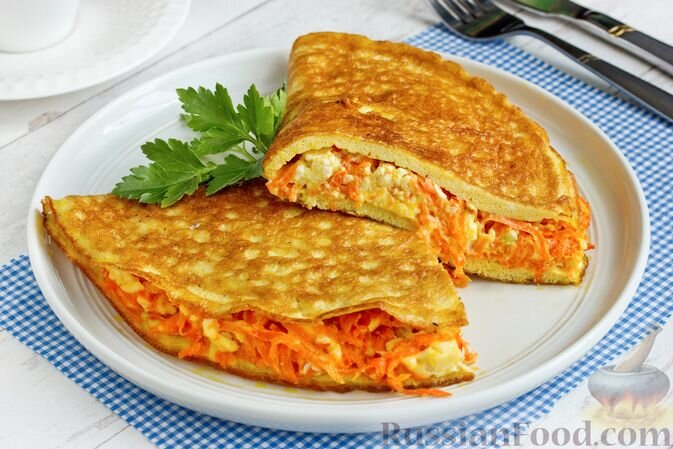 - Омлет с начинкой из моркови и плавленого сыра.