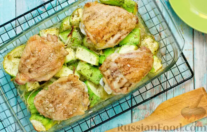 Если не хочется проводить много времени на кухне, рецепт курицы с кабачками в духовке станет находкой. Достаточно нарезать кабачки и лук, выложить их в форму, а сверху разместить куриные бёдрышки — спустя некоторое время вы получите отличный обед, где гарнир идеально сочетается с запечённым мясом.