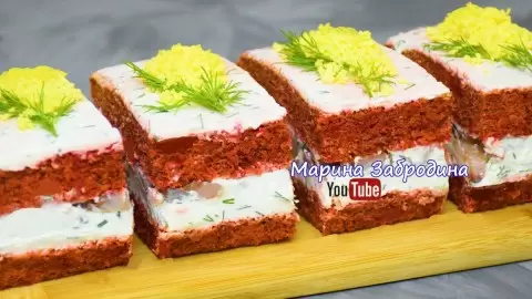 Эта необычная закуска на основе малосольной селедки и сливочного сыра способна украсить любой праздничный стол. Сочетание нежного бисквита с мягким сыром и вкусом селедки создаёт неповторимое карнавальное наслаждение для гурманов.