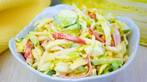 Ищете идеальное сочетание для семейного ужина или праздничного стола? Этот салат с пекинской капустой, крабовыми палочками, огурцами и яйцами станет настоящим хитом любого застолья. Он прост в приготовлении, но невероятно насыщен вкусом и ароматом свежих ингредиентов.