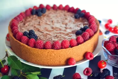 Смешайте просеянную муку с солью, ванилью и разрыхлителем. Затем добавьте холодное сливочное масло, нарезанное на кусочки, и перемешайте до получения крошки. Введите яйцо и быстро замесите тесто, не долго вымешивая. Оберните его пленкой и отправьте в холодильник на 30 минут. Подготовьте форму диаметром 22 см, застелив дно пергаментом. Вырежьте тесто и сформируйте бортики, по желанию укладывая на дно печенье Орео.