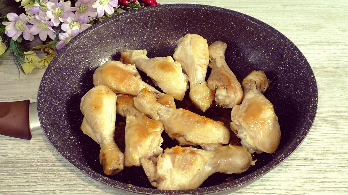 Первым шагом является обработка куриных голеней. Удалить кожу или оставить – выбирайте по вкусу. Для того чтобы голени получили румяную корочку, их следует обжарить с обеих сторон до легкого золотистого оттенка, не добавляя специй на этом этапе.