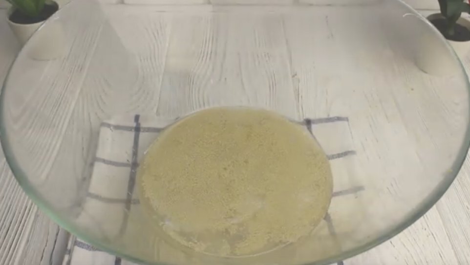 Процесс приготовления довольно прост. Сначала стоит налить теплую воду в глубокую миску, добавить туда дрожжи и сахар, хорошо перемешивайте до полного растворения.