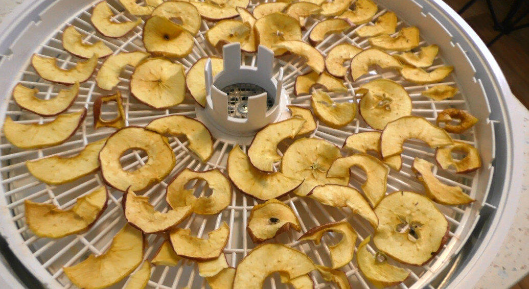 Сначала тщательно промойте яблоки и удалите сердцевину. По желанию, можно снять кожицу, что сделает вкус более гладким.Затем нарежьте яблоки на кольца толщиной около 0.5 см.Переложите нарезанные яблоки на поддоны вашей сушилки.Включите сушилку, установив температуру на 55 градусов и оставьте на 10 часов.По истечении срока сушения достаньте яблоки, дайте им остыть, и они готовы к употреблению на протяжении всей зимы.Приятного аппетита!