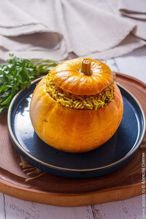 Рецепт тыквы в духовке с мясом и рисом