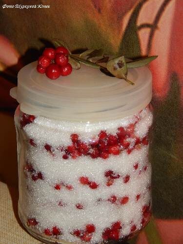 Главное условие успешной заготовки — полное отсутствие влаги. Выкладывайте бруснику слоями, чередуя ее с сахаром, при этом не забывайте легонько встряхивать для лучшего утрамбования.