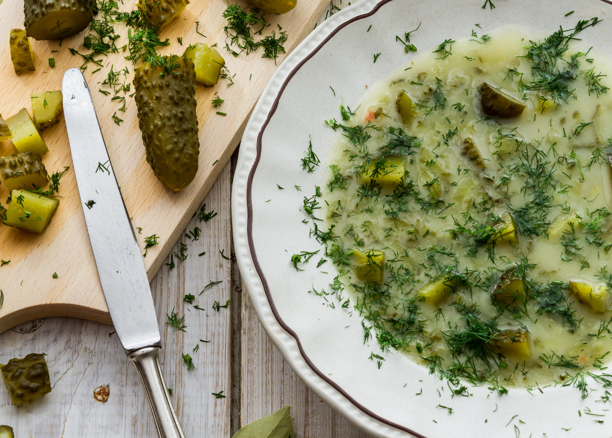 Этот польский суп с солеными огурцами и укропом, известный как zupa og?rkowa, станет натуральной альтернативой летнему холодному огуречному супу. Он готовится на основе ароматного бульона, в который добавляют соленые огурцы, что делает его невероятно вкусным.