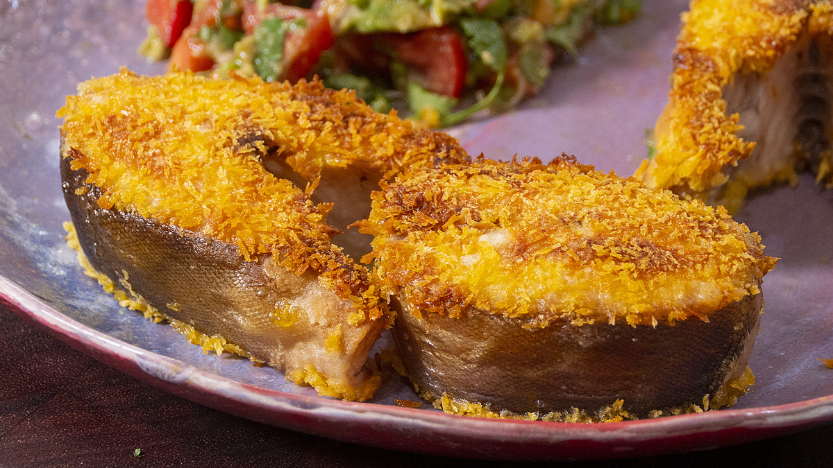 Прежде всего, терпуга нужно очистить: удалить чешую, внутренности, плавники и голову. Затем тщательно промыть рыбу и нарезать ее на средние кусочки. После этого высушите их на бумажном полотенце, чтобы избавиться от лишней влаги.