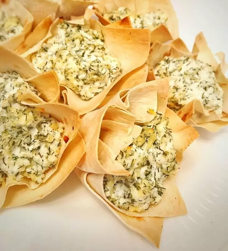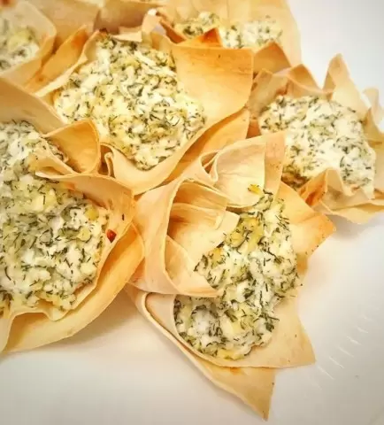 4. Поместите формочки в предварительно разогретую до 170 градусов духовку. Пеките до момента, пока края лаваша не зарумянятся и не станут золотистыми.