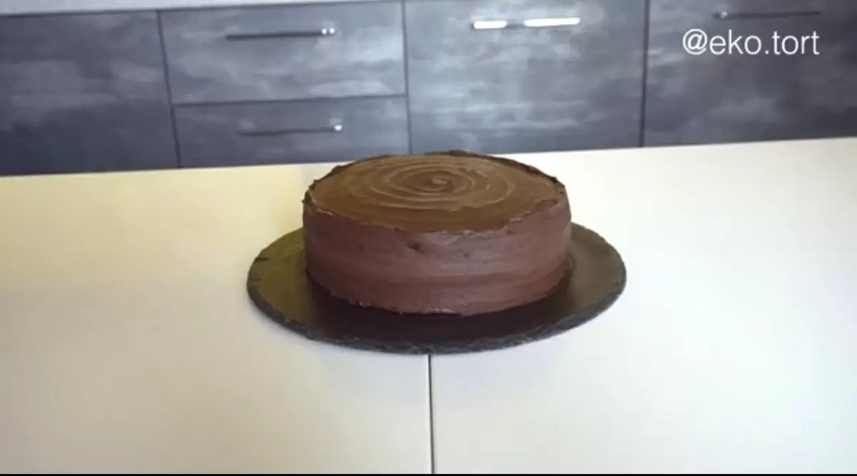 При сборке торт можно выровнять с помощью спатулы и покрыть шоколадным кремом, чтобы завершить этот сладкий шедевр.