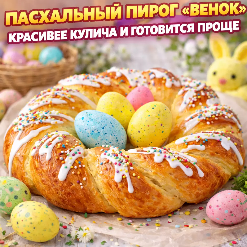 С наступлением Пасхи на столах традиционно появляются куличи, но все чаще хозяек привлекает возможность порадовать своих близких нетрадиционной выпечкой - пасхальным пирогом «Венок».