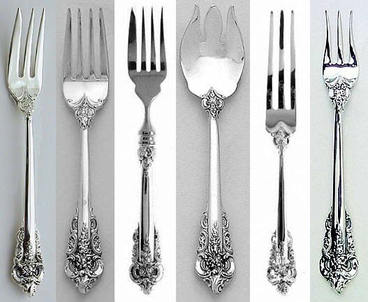 В зависимости от типа пищи, на столе могут присутствовать следующие виды вилок: